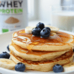 C’est la question que l’on me pose le plus souvent ! Pour éviter l’effet « carton » typique de la protéine en poudre, le secret réside dans l’équilibre entre la whey et la farine. Je vous conseille d’ajouter une petite dose de levure chimique et, surtout, de ne pas trop cuire vos pancakes : dès que de petites bulles apparaissent en surface, hop, on retourne !